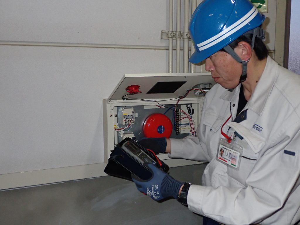 消防法で定められた点検基準に従い、有資格者が消防設備(自動火災報知設備や消火器など)の点検を行っています。また消防署への届け出や報告を行います。